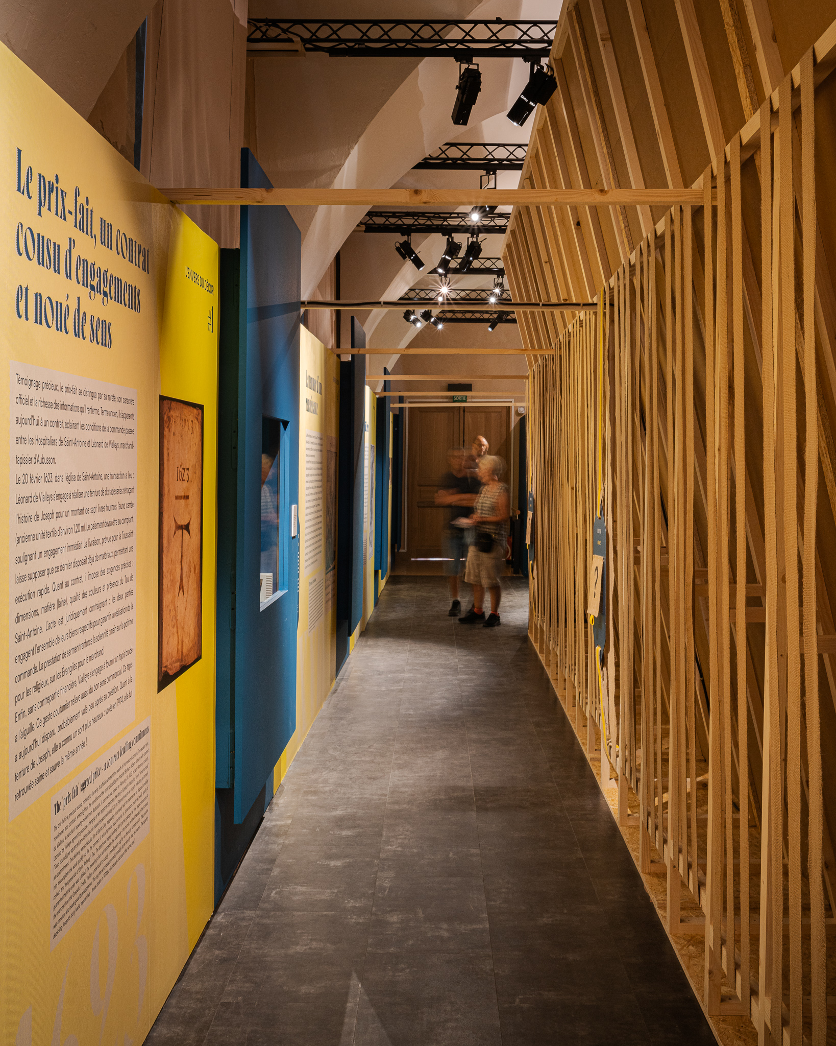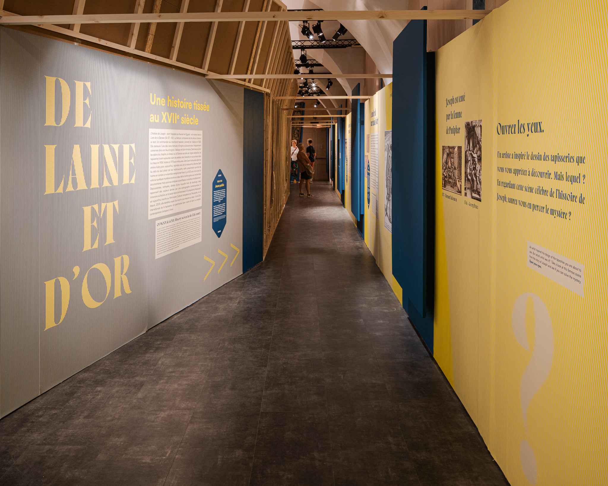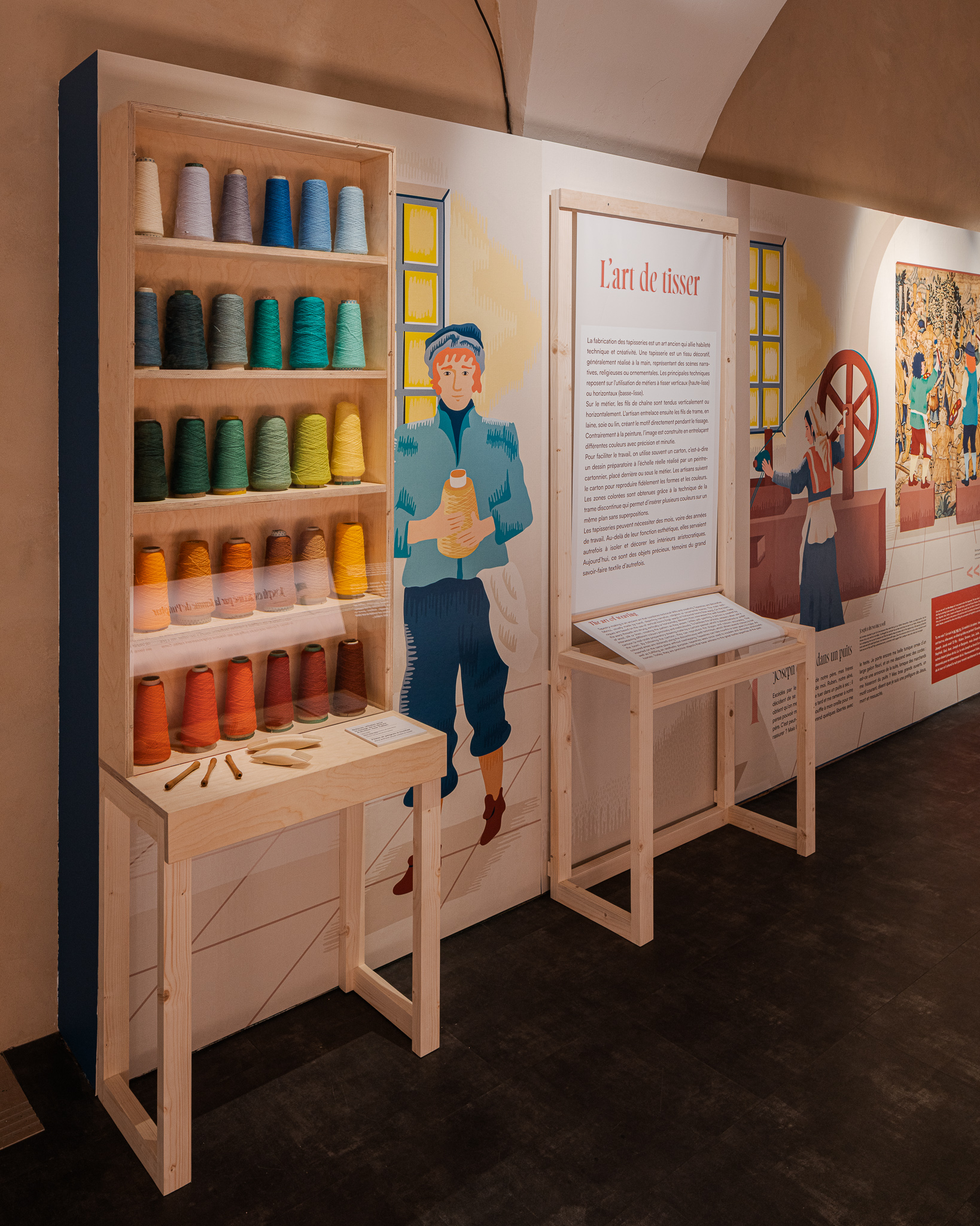 Puis, une longue fresque immersive décrivant un atelier de maitre lissier accompagne les visiteurs à la découverte de l’oeuvre.