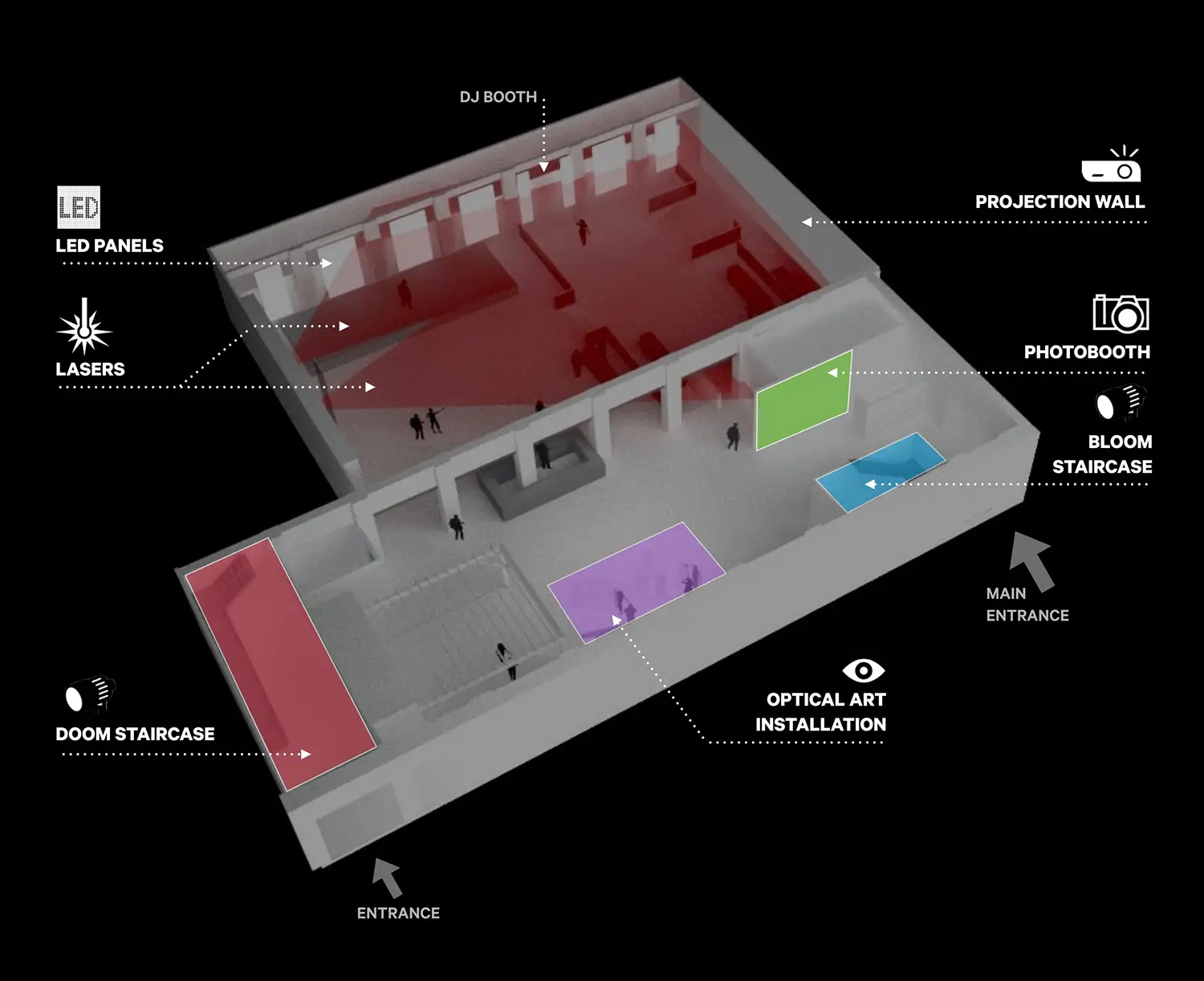 Pour Moment Factory, j’ai participé à la conception et au design scénographique des installations multimédias.
